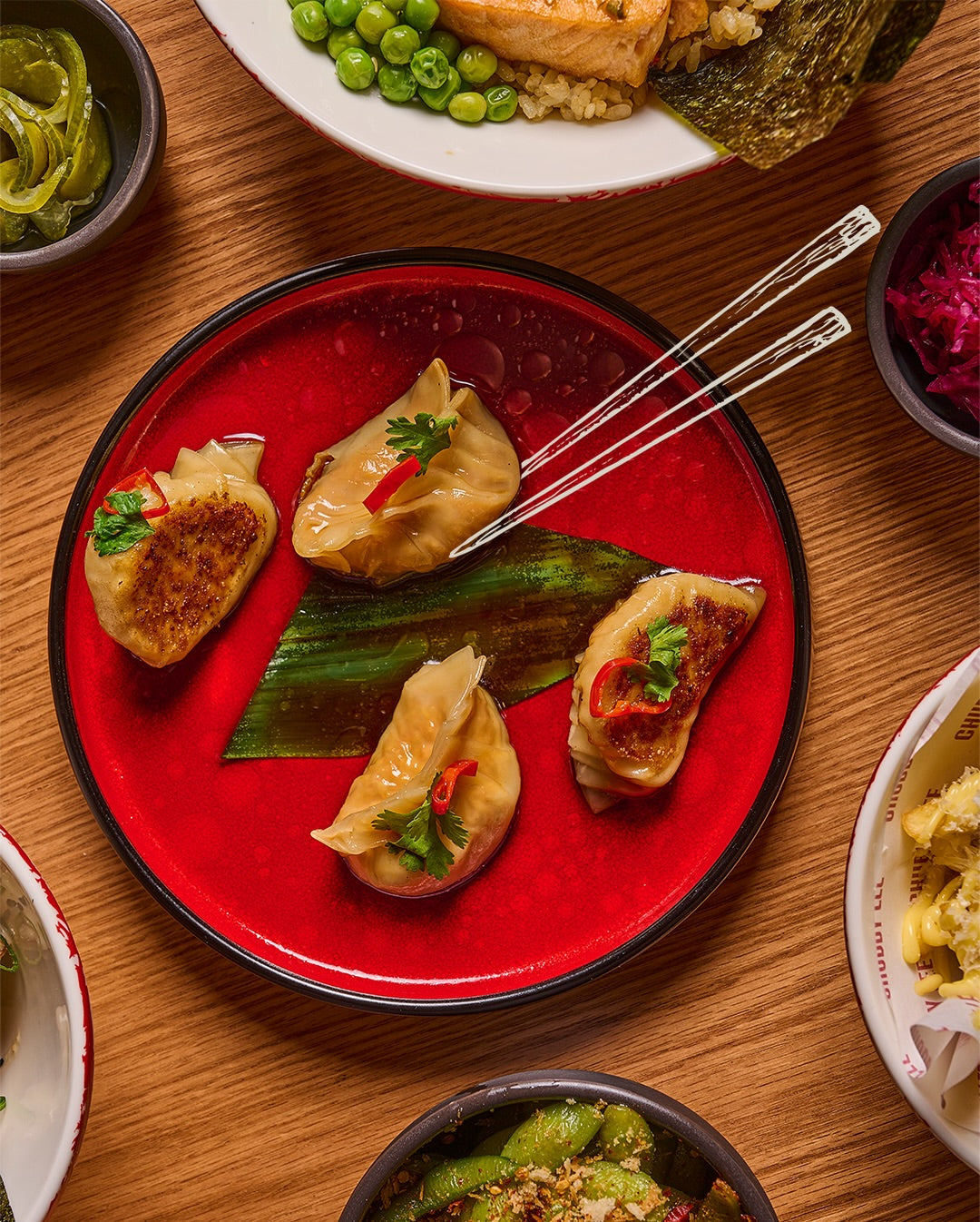 - Supporting sides like pickled vegetables and mushrooms that complement the main dishes